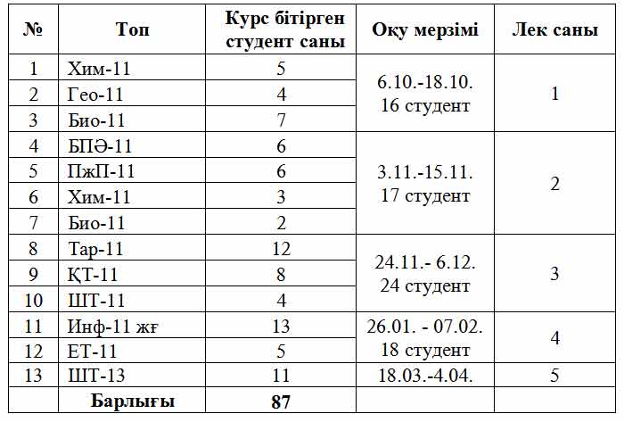 В связи с тем, что контингент студентов составляет 304 выпускника, было запланировано проведение занятий в пять потоков (3 потока - в 1-м полугодии и 2 потока - во 2-м учебном полугодии).