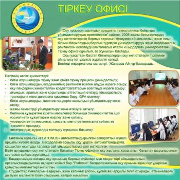 Бөлімнің жұмысы «PLATONUS» автоматтандырылған ақпараттық жүйесі арқылы жүзеге асады. Бағдарлама арқылы оқу үрдісін автоматтандыруға, қашықтан оқытуды талапқа сай ұйымдастыруға қол жеткізілген.