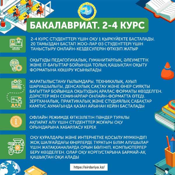 Для обучающихся из отдаленных регионов без доступа к Интернету, а также средств для обучения (ноутбуки и др.), предусмотрено проживание в общежитиях с обеспечением компьютерной техники и обучения онлайн без посещения корпуса.