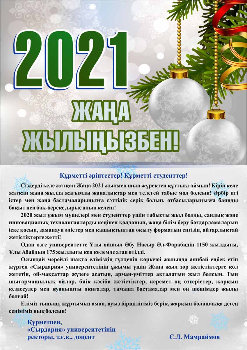 Пусть Новый год станет годом больших свершений, воплощения мечтаний и надежд для коллектива университета "Сырдария", который в столь торжественное время прилагает все усилия для процветания страны.