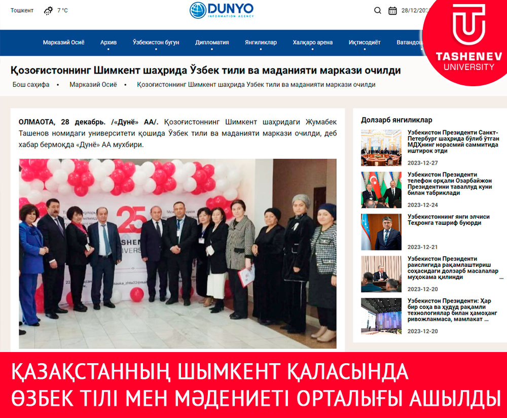"Dunyo" IA correspondent reports that the center of Uzbek language and culture was opened at the Zumabek Tashenov University in Shimkent, Kazakhstan.
