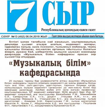 Employees of the department of Music Education make every effort to train qualified specialists and future singers and musicians working in the field of education and culture of the Republic of Kazakhstan.
