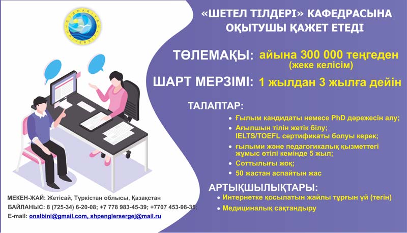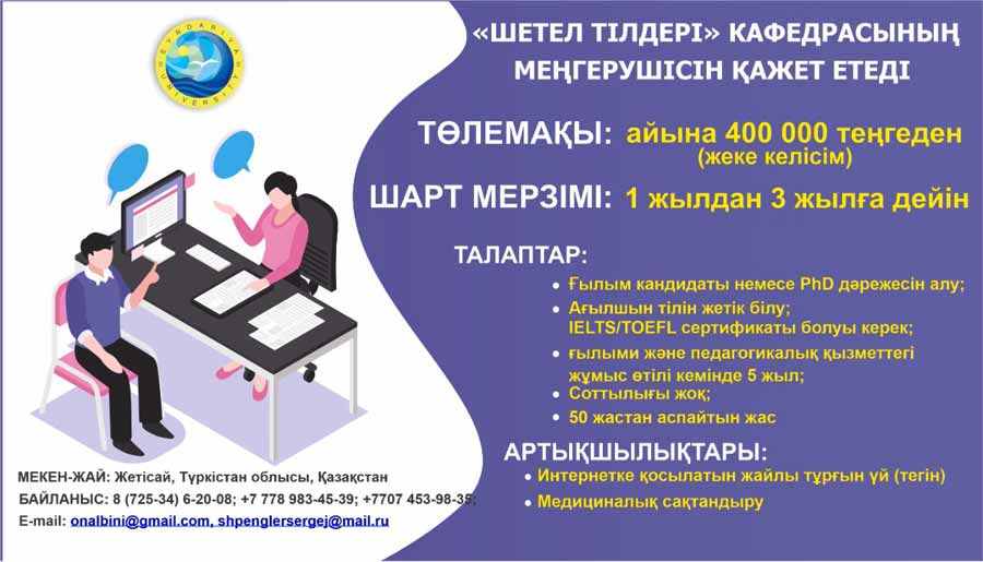 "Syrdariya" University announces a competition for vacancies in the 2020-2021 academic year: