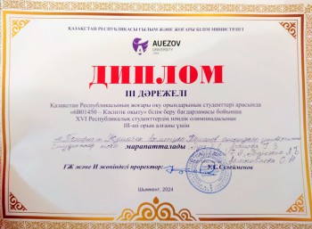 On April 25 and 26, within the framework of events approved by the Ministry of Science and Higher Education of the Republic of Kazakhstan during the organization of the department of “Fine Arts, Technology and Music Education” of the M. Auezov University, our students of the educational program 6B01450-Professional training took part in the XVI Republican disciplinary Olympiad “Integration in vocational education." Our students successfully demonstrated their abilities in the event and took third place, they were awarded a 3rd degree diploma. Pupils of the PiK-20-16k group Mamraym Dariga, Abdikarim Aishabibi, Asanova Gulzira, Aues Khadisha successfully completed test tasks and demonstrated their practical knowledge of the technology of making decorative panels (felting technology, felt and wool materials). Scientific projects were prepared under the leadership of U.Zh. Konakbaeva. The students who participated in the Olympiad gained a lot of experience, made friends with students from other universities, and learned from each other. The students really liked it, and they invited us to participate in such competitions and olympiads more often. The Olympics made a great impression on them.
