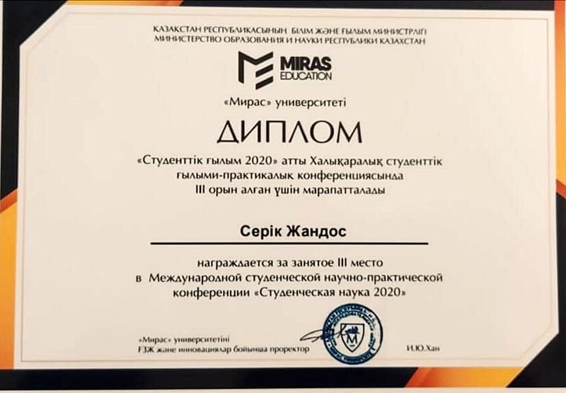 Congratulations to our winning student Serik Zhandos on his scientific achievement.