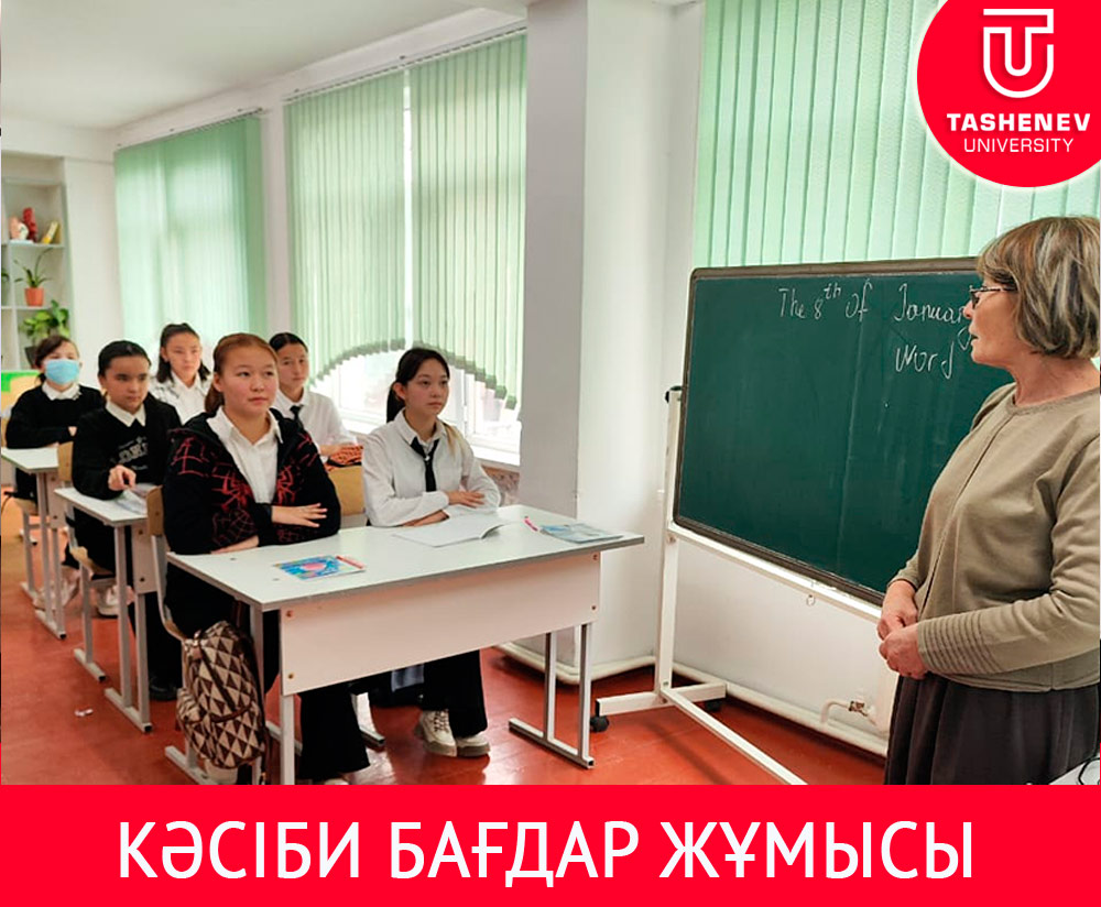 Today, on 8.01 2024, teachers of the department "Oner zhane Saz" Tumanova Gulzada Askarovna and Hashimkhanova Diana Ravilyevna visited the "comprehensive secondary school No. 122 Akzhar" for career guidance.