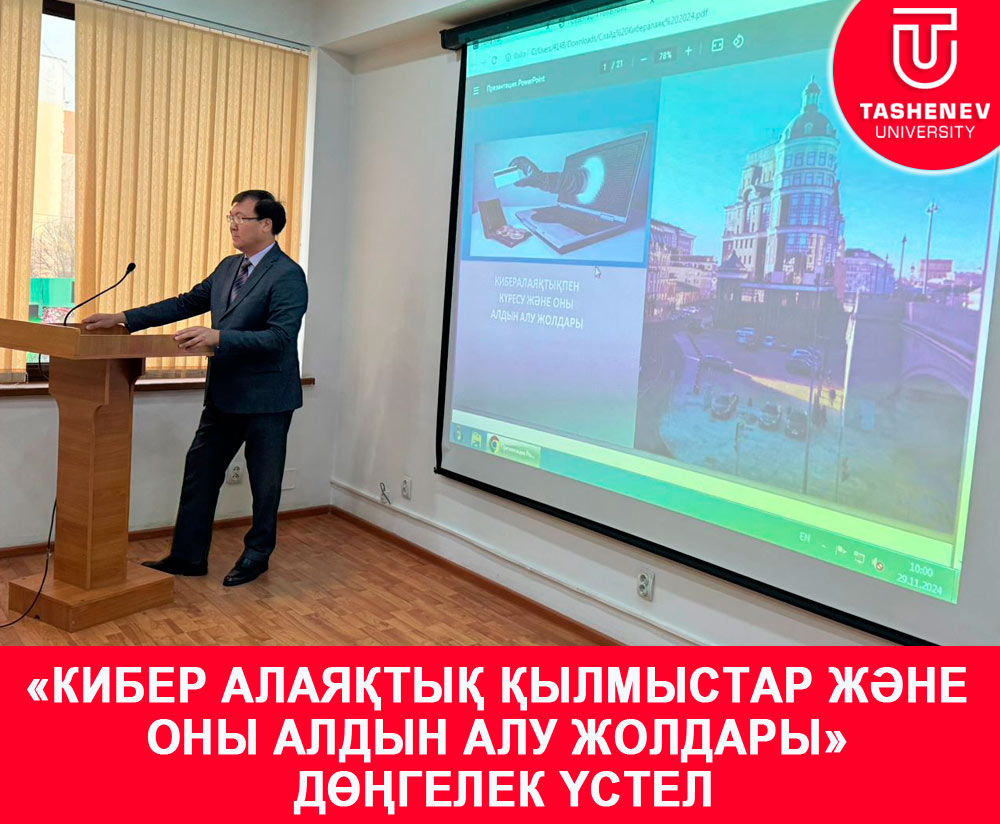 On November 29, 2024, at 10:00 a.m., the Department of Law and Business hosted a round table on the topic «Cyberbullying and ways to prevent them», an organizational one for students of the specialty «Jurisprudence». The event was attended by veteran of the judicial system of the Republic of Kazakhstan, honorary citizen of Shymkent Elchibaev A.K. The round table was opened by the head of the department, Ph.D. Bijan N.R., after which Ph.D. Turashev E.N. presented a report on «Cyberbullying and ways to prevent them» with a presentation. Upon completion of the report, students actively asked questions to the speaker, the head of the department and the invited guest, and participated in the discussion of the topic.