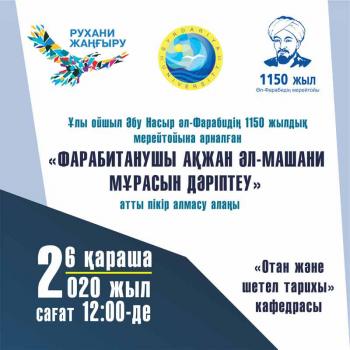 Discussion platform "Promoting the legacy of the Farabi scientist Akzhan al-Mashani", dedicated to the 1150th anniversary of the birth of Abu Nasir al-Farabi.
