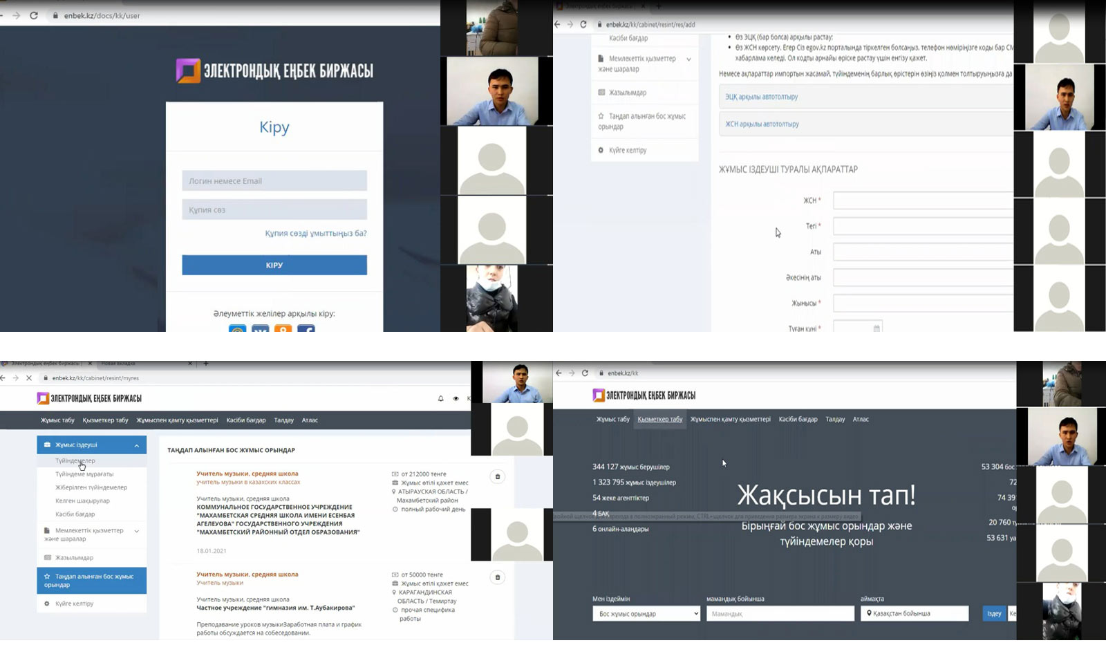 - Бос орындар және түйіндемелердің деректерін онлайн арқылы алуға