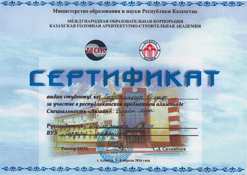 "Сән дизайны" республикалық пәндік олимпиадасының жүлдегері