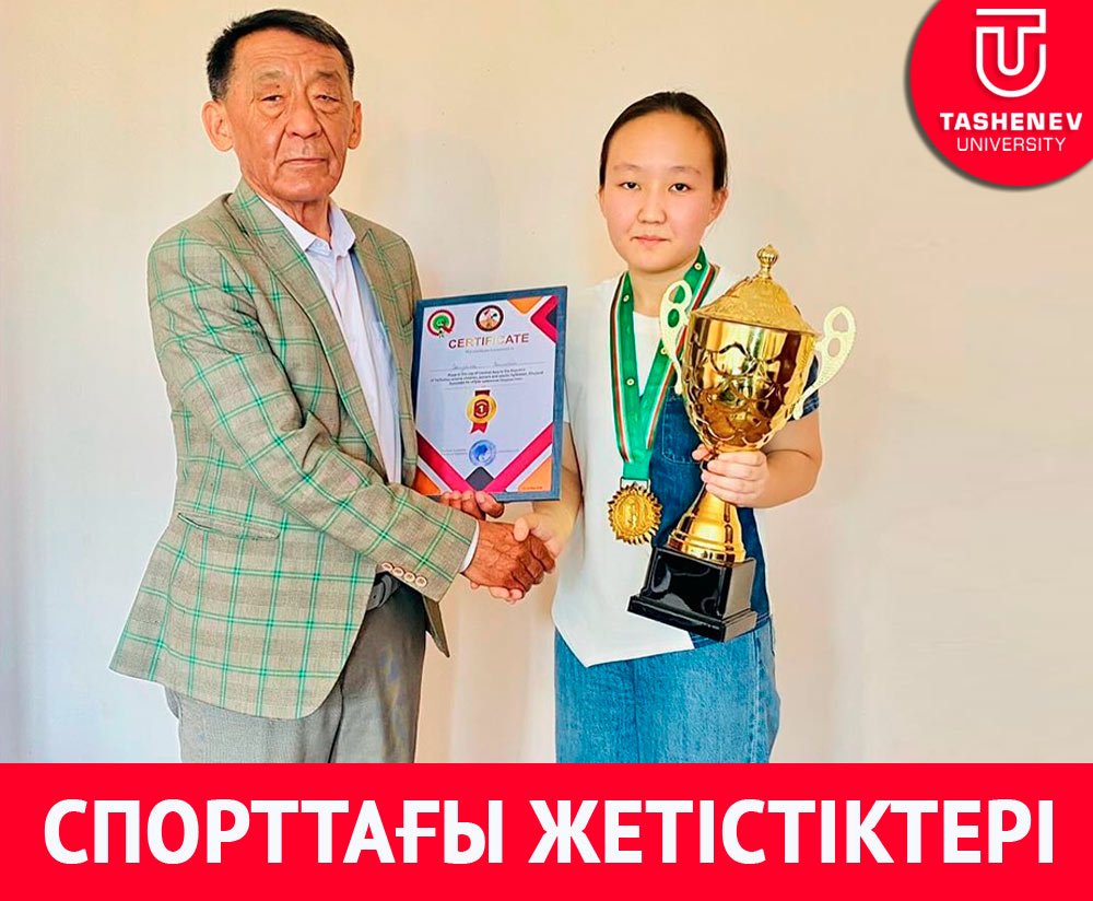 Аталмыш сынға Жұмабек Ахметұлы Ташенев атындағы университеттің “Спорт және дене шынықтыру” факультеті, Фк-23-1-к2 тобының студенті Сеидалы Сымбат Султанбекқызы 48 кг салмақ дәрежесінде сынға түсті. Нәтижесінде қыран қанаты қалықтаған көк байрағымызды дүниеге дүбір салып, көкке желбіретіп, спорт бәсекесінің жеңімпазы атанды.