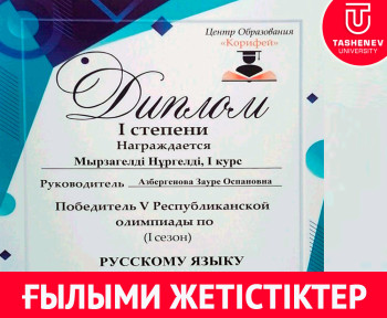 Мырзагелді Нұргелді (1 курс), Үсенқызы Жансая (2 курс), Тағабекқызы Арай (2 курс) сияқты жеңімпазстуденттерді 1 дәрежелі дипломдарымен құттықтаймыз.