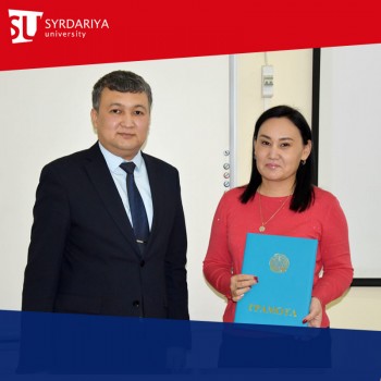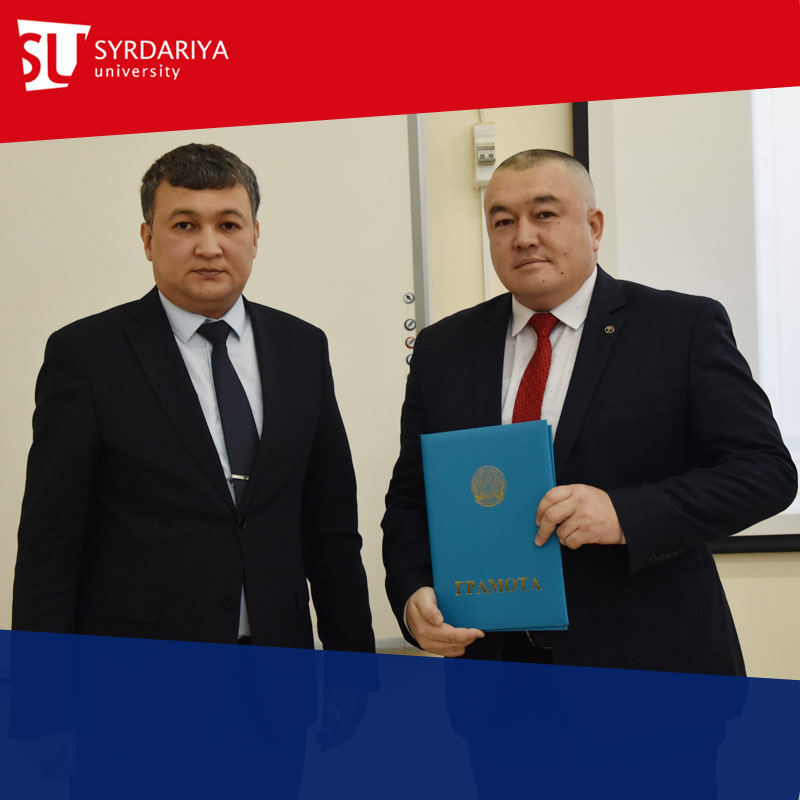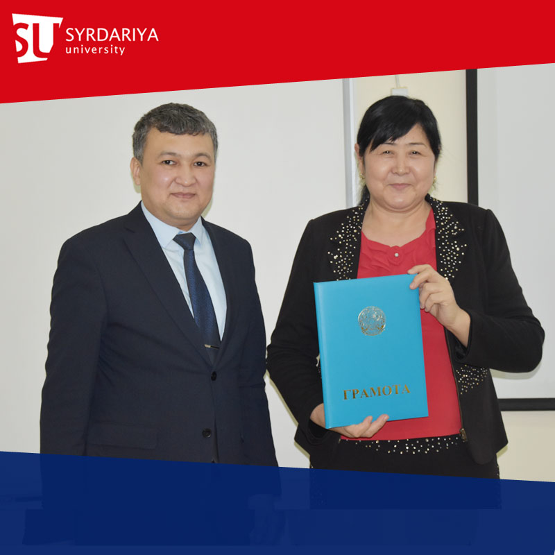 Білім мен ғылымның дамуына қосқан елеулі үлесі және кадр даярлаудағы жоғары жетістіктері үшін Түркістан облыстық мәслихатының хатшысы Қ.Балабиев «Сырдария» университетінің профессор-оқытушылары мен қызметкерлерін естелік грамоталармен марапаттады: