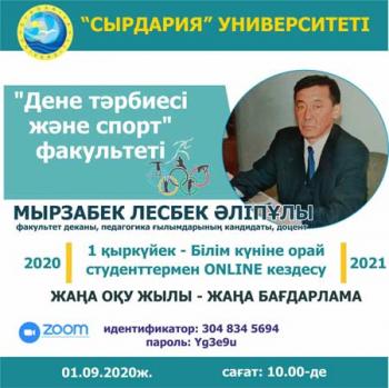 1 қыркүйек – Білім күніне орай «Дене тәрбиесі және спорт» факультетінің деканы студенттермен ONLINE кездесу