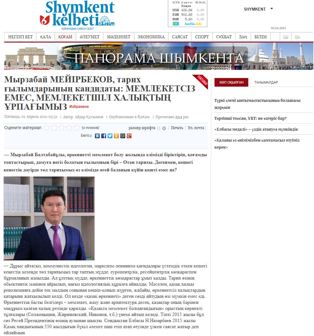 Сілтеме: https://shymkala.kz/index.php/world/item/8136-myrzabaj-mejirbekov-tarikh-ylymdaryny-kandidaty-memleketsiz-emes-memleketshil-khaly-ty-rpa-ymyz