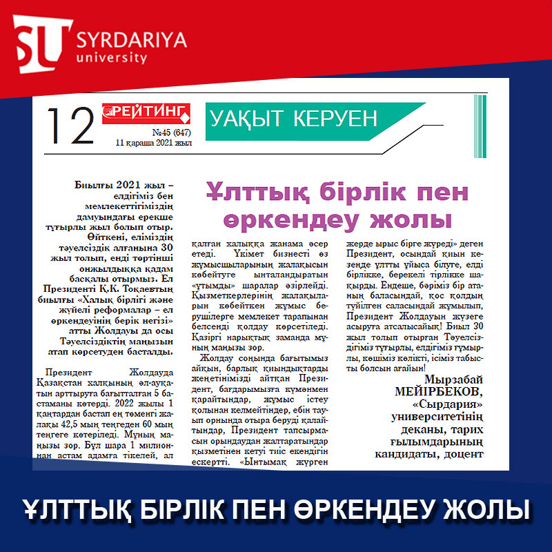 Мырзабай МЕЙІРБЕКОВ, «Сырдария» университетінің деканы, тарих ғылымдарының кандидаты, доцент