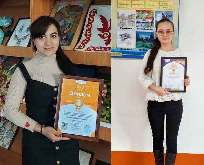 «Дизайн және өнер» факультеті «Өнер» кафедрасының 6В01403- Көркем еңбек және сызу мұғалімдерін даярлау / 5В010700- «Бейнелеу өнері және сызу» білім беру бағдарламасының 2 курс студенті Дадаева Фодма Әбдіғафурқызы және 3 курс студенті Құлан Аяулым Асылбайқызы «Ұстаз тілегі» атты ғылыми –әдістемелік орталықтың ұйымдастыруымен Республикалық пән аралық көркем еңбек (қыздар арасында) және бейнелеу өнері пәнінен студенттер арасында 1 дәрежелі дипломмен марапатталды.