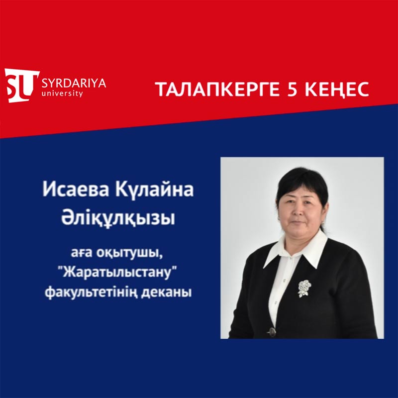 “Жаратылыстану” факультетінің деканы К.А.Исаеваның талапкерлерге арналған 5 кеңесін ұсынамыз.