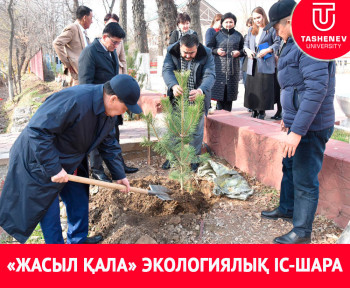 «Жұмабек Ахметұлы Тәшенев» атындағы университет АҚ-ның вице-президенті Оңалбай Аяшұлының бастамасымен «Жасыл қала» атты экологиялық іс-шара ұйымдастырылды. Аталған шараға университеттің проректорлары мен «ІТ және шетел тілдері» факультетітің деканы Ботабаева Ж.Н. және  факультеттердің декандары қатысып, Ақ үй маңына 30-ға жуық шырша отырғызды.  Іс-шараның басты мақсаты – экологиялық сана мен табиғатқа деген жауапкершілікті арттыру, сондай-ақ университет аумағын көгалдандыру арқылы аймақтың экологиялық ахуалын жақсарту болды. Шырша ағаштарын отырғызу барысында қатысушылар табиғатты қорғаудың маңыздылығын атап өтіп, студенттер мен оқытушыларды тұрақты даму принциптеріне негізделген бастамаларға белсене қатысуға шақырды.
