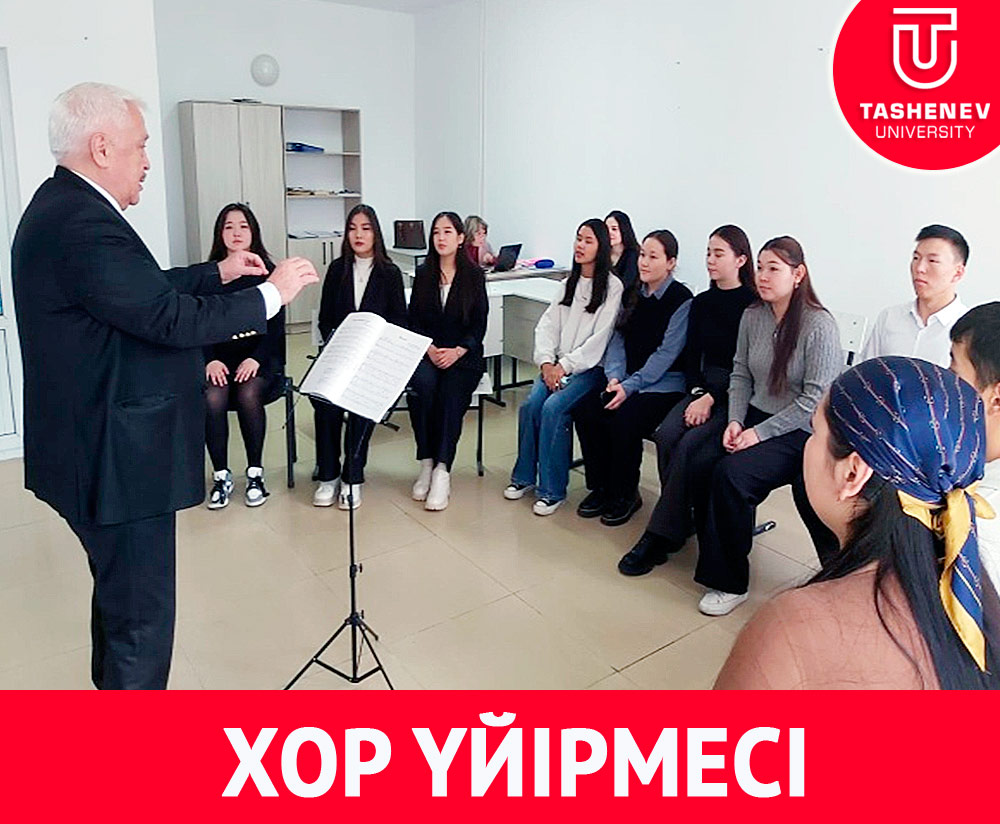 «Саз және ән» кафедрасында «Хор үйірмесі» 02.09.2024 оқу жылынан бастап жұмыс жасап келеді. Жетекшісі: ҚР мәдениет қайраткері Мажитов Улукбек Халматович.Үйірменің жылдық жоспары бекітілген.Үйірмеге 25 студент қатысады. Студенттермен ән айтудың музыкалық ережелерімен,ән айту дағдылары мен вокалдық жаттығулармен, эстетикалық мәдениетін дұрыс ойлаумен және дамытумен дұрыс тыныс алу ережелерімен үйретіп жұмыстар жүргізілді.Қазіргі уақытта Ж.А. Тәшенов атындағы университеттінде ұйымдастырылған бірнеше іс-шараларда өз өнерлерін көрсетуде.