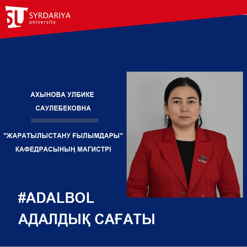 Ахынова Улбике Саулебековна, "Жаратылыстану ғылымдары" кафедрасының магистрі