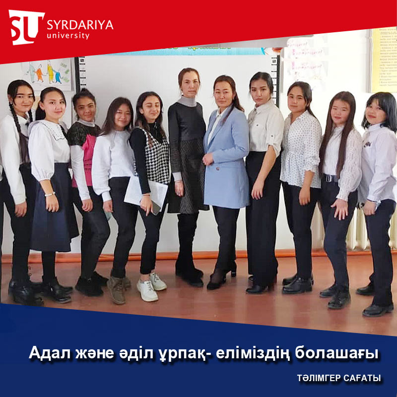 Диз-11 тобының студенті Төреқұл Аяжан «Сыбайлас жемқорлыққа қарсы іс-қимыл» атты баяндама жасап,  «Сырдария» университетінің студент жастары сыбайлас жемқорлыққа қарсы екендігін атап өтті.  Сабақта топтық жоба ұйымдастырылып, сұрақ-жауап сайысымен жалғасты және студенттер өз ойларын, өлең шумақтарымен жеткізді.