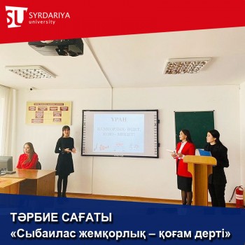 Бүгін, қараша айының 12-жұлдызы күні «Филология және гуманитарлық білім» факультеті, «Ағылшын тілі» кафедрасының 6В01703-«Шетел тілі: екі шетел тілі мұғалімдерін даярлау» білім беру бағдарламасы бойынша Шт-29 тобының 3-курс студенттері «Сыбайлас жемқорлық – қоғам дерті» тақырыбында ашық тәрбие сағатын өткізді.
