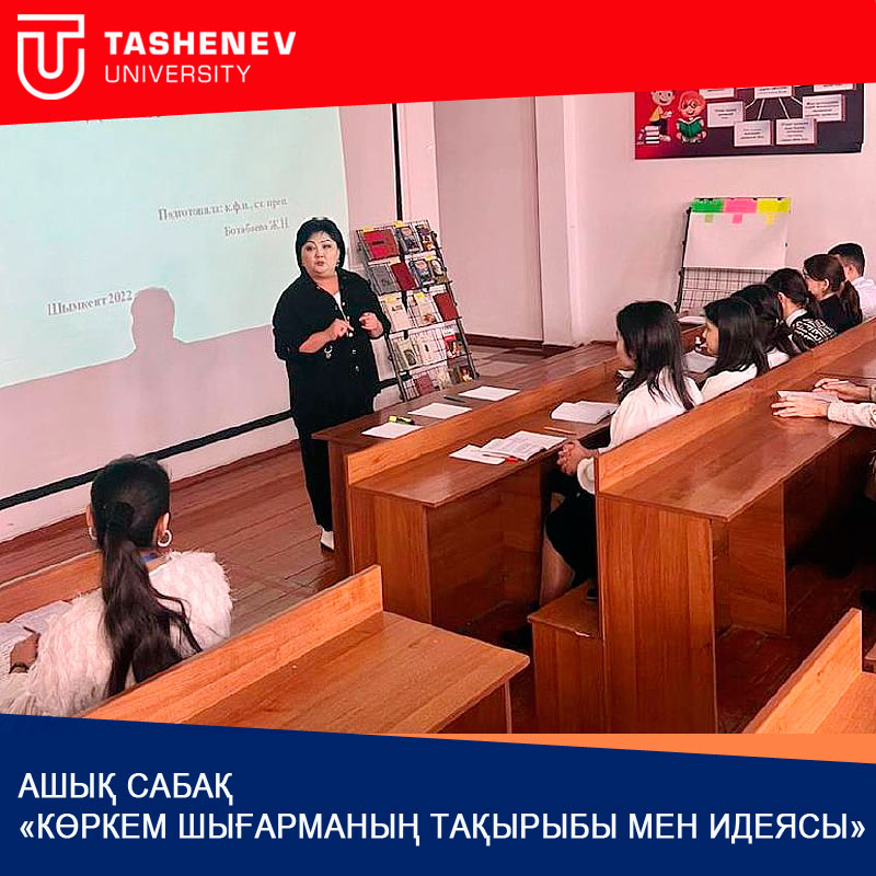 Университеттің "Орыс тілі мұғалімдерін даярлау" Білім беру бағдарламасының 1 курс студенттерімен интерактивті ашық сабақ өткізілді. Кафедра меңгерушісі, ф.ғ.к Жанна Ботабаева жүргізген интерактивті сабақ топтық ойын элементтерімен сабақтасу арқылы бұл ақпараттық-визуалды формат қатысушыларды ашық сабаққа толық қамтуға мүмкіндік берді.