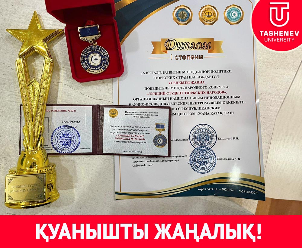 «Түркі халықтарының үздік студенті» атанып І-ші дәрежелі дипломмен марапатталды.