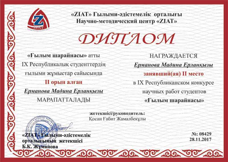 2 орын "ІЗДЕНІМПАЗ" номинациясы бойынша