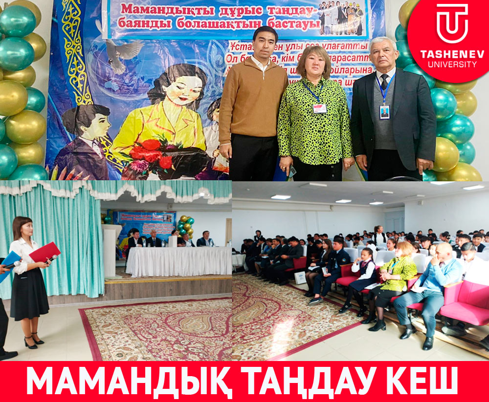 2023 жылдың 17 қараша күні «Экономика және құқық» кафедрасының з.ғ.к., аға оқытушы З.Ч. Тультабаев, э.ғ.м., аға оқытушы З.А.Абдурахманова және «Ақпараттық коммуникациялар технологиялар» кафедрасының магистр, оқытушы - Садуақас А., Сакен Сейфуллина атындағы ЖББМ КММ Ордабасы ауданындағы 9-11 сынып оқушыларына кәсіби бағыт-бағдарын «Мамандықты дұрыс таңдау-баянды болашақтың бастауы» атты мамандық таңдау кешіне қатысып, кәсіптік бағдар жұмысын атқарып үгіт-насихат жұмыстарын жүргізді. Іс-шараға Шымкент қаласының барлық жоғары оқу орындары қатысты, 9-11 сынып оқушыларға үгіт-насихат болашақ мамандықты бағыт бойынша дұрыс таңдауды жәрдем берді.