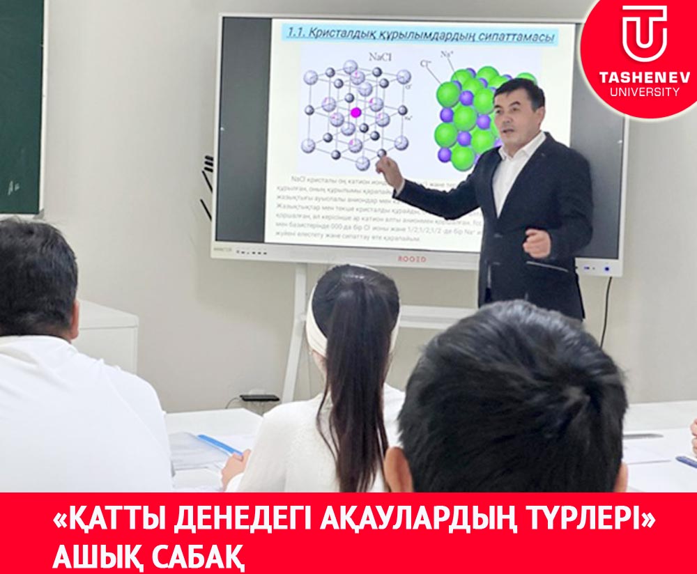 21.11.2024 күні «Ж.А.Тәшенев атындағы университеті» АҚ «Педагогикалық және жаратылыстару ғылымдар» факультеті, «Математика және информатика» кафедрасының қауымдастырылған профессоры, PhD., С.А.Пазылбек  ЕП-22-14к тобына «Қатты дене физикасы» пәні бойынша «Қатты денедегі ақаулардың түрлері» тақырыбында акпараттық дәріс  формасында ашық сабақ өткізді. Сабаққа кафедра ПОҚ қатыстып, оқытушының сабақ барысында жаңа тақырыптың теориялық бөлімін толық қамтып, студенттермен өзара тығыз байланыс болғанын жоғары бағалады.