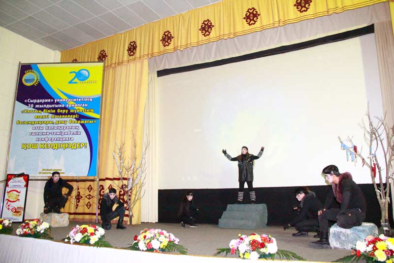 Сонымен бірге мерейтойдың қадірлі қонағы, ЖОО қауымдастығының президенті, э.ғ.д., профессор Алшанов Рахман Алшанұлы университет ұжымын құттықтай отырып, оқу орнының қазіргі таңда ешбір білім ошақтарынан кем түспейтінін және ондағы жастардың таланттарын айрықша атап өтті: "...Жастарға жағдай жасасаң, бізде дарынды балалар көп. Дарынды балалар – жастар. Мына спектакльді көріп отырып, Алматыдан арнайы шақырылған әртістер екен деп ойлап қалдым. Болашақта үлкен актер шығатынына ешқандай күмән жоқ. Режиссердің қолына түссе болды".