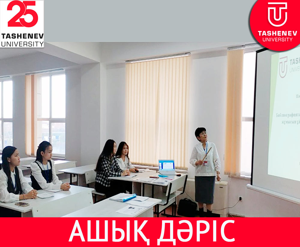 Tashenev University Филология факультетінде 2023 жылдың 23 қараша күні «Тілдер және әдебиет» кафедрасының доценті, п.ғ.к. С.Т.Мусаева 6В03201- «Кітапхана ісі» білім беру бағдарламасының 2 курс ФИ-22-4к оқу тобында «Библиографиятану» пәнінен «Библиографиятану саласы бойынша ғылыми-зерттеу жұмысын ұйымдастыру және оның мазмұны» тақырыбында ашық дәрісін өткізді. Ашық дәріске факультет деканы А.А.Мамытов, кафедраның профессор-оқытушылар құрамы мен оқу-әдістемелік бөлімінің өкілдері қатысты. Білім беру бағдарламасының студенттері сабақ барысында өздерінің библиографиялық қабілеттерін шебер көрсетіп, жоғары бағаға ие болды. 2 курс студенттері үшін қажетті білім мен көрнекіліктің заманауи үлгісін қолданатын дәріс болды.
