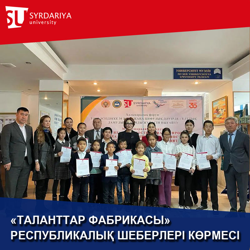«Тәуелсіздікке 30 жыл: жаңа цифрлық дәуірде - ұлттық дамудың ұтымды жүйесін нығайту» атты Халықаралық форумның «Таланттар фабрикасы» атты дарынды жастардың республикалық жас суретшілер мен қолөнер шеберлері көрмесі болып өтті. Көрмеге аудан мектептері Б. Момышұлы атындағы мектеп гимназия, Түркістан, Байзақов, №1 «Мырзакент» - мектеп гимназиясы, Ю. Гагарин, С.Ерубаев, И.Жансүгіров атындағы ЖОМ КММ ұстаздары мен оқушылары өз қолөнер бұйымдарын көрмеге койды.