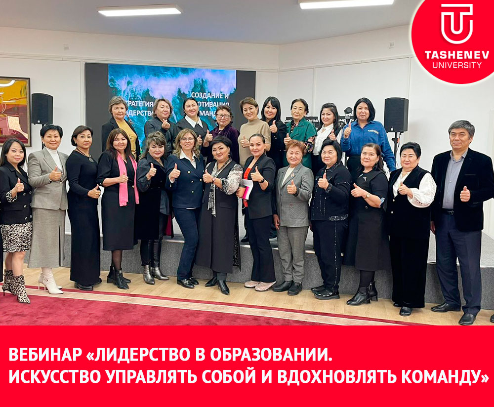 26 ноября 2024 года в Университете имени Жумабека Ташенева прошел вебинар: «Лидерство в образовании. Искусство управлять собой и вдохновлять команду» для руководителей отделов, деканов факультетов, заведующих кафедр и профессорско-преподавательского состава.