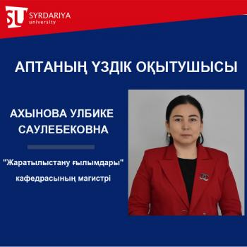 Жаратылыстану факультеті, “Жаратылыстану ғылымдары” кафедрасының аға оқытушысы, ғ.м., Ахынова Ұлбике.