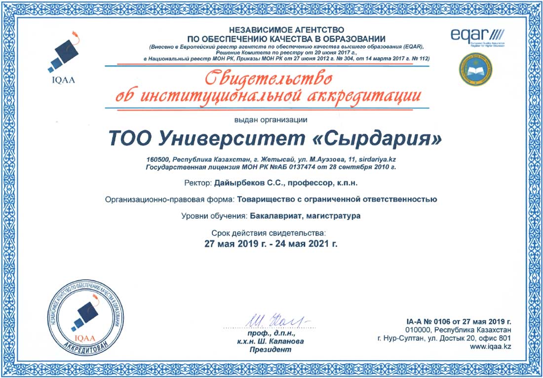 "СЫРДАРИЯ" УНИВЕРСИТЕТІ ҰЛТТЫҚ РЕЙТИНГТІҢ ҮЗДІКТЕРІ САПЫНДА