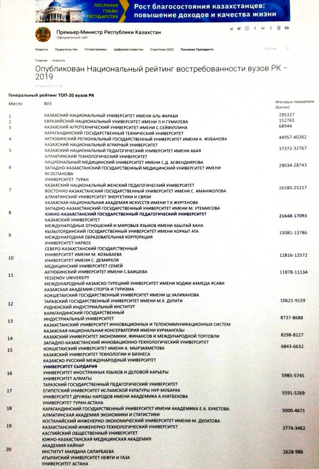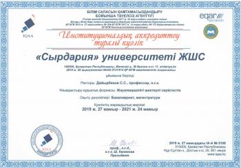 "ҚР ЖОО-на деген сұранысының ұлттық рейтингі – 2019" бойынша аккредиттелуге елімізде қатысқан 87 жоғары оқу орны арасында үздік деп танылған "ТОП-20" басты рейтингісінің нәтижесінде "Сырдария" университеті 16-орынды иеленіп отыр. Бұл, әрине, еліміздегі ЖОО арасындағы беделіміздің көрсеткіші деуімізге болады.