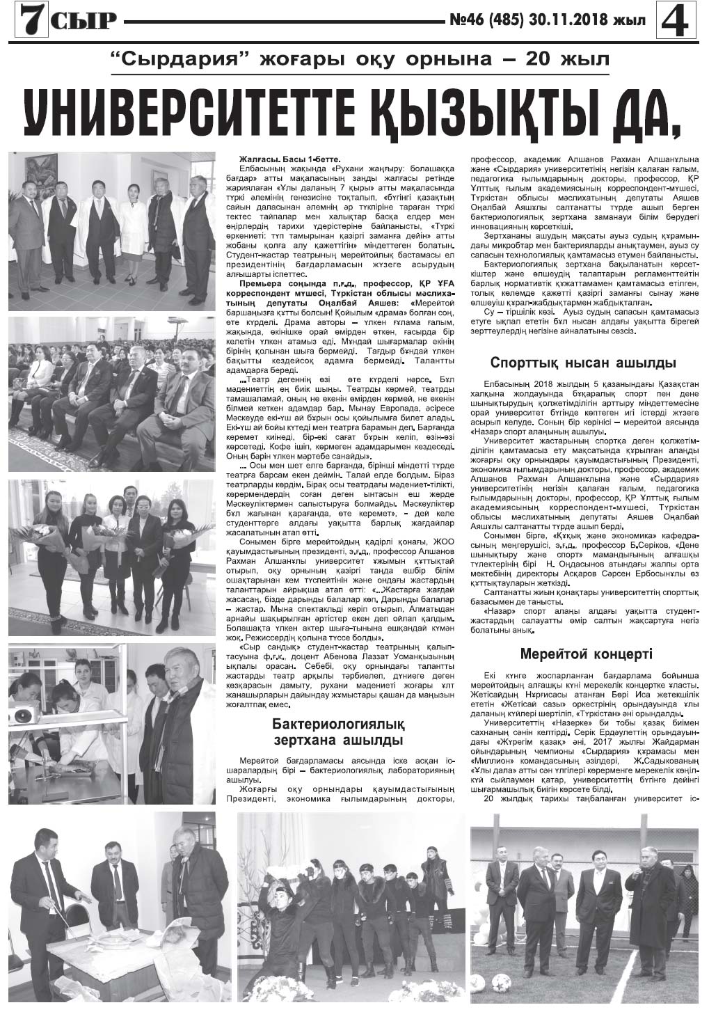 «Сырдария» университетінің 20 жылдық мерейтойына байланысты біраз уақыттан бері іс-шаралар легі іске асып келді.