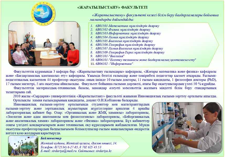 "Жаратылыстану" факультеті сіздерді оқуға шақырады!