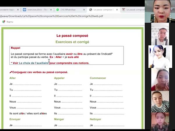 21 қазан күні 5В011900 - «Шетел тілі: екі шет тілі» білім беру бағдарламасы бойынша ШТ-18 тобының үшінші курс студенттерімен «Passй composй» тақырыбында «Екінші шетел тілінің практикалық курсы (A1, A2 деңгейлері)» тақырыбында ашық онлайн сабақ өткізілді.