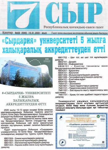 7СЫР, Республикалық қоғамдық-саяси газет, №02 (590) 15.01.2021 жыл