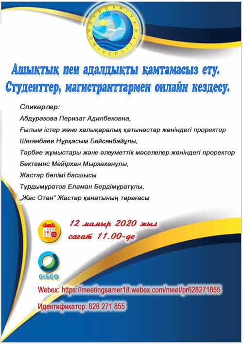 Ашықтық пен адалдықты қамтамасыз ету мақсатында Студенттер, магистранттармен онлайн кездесу өткізілді.