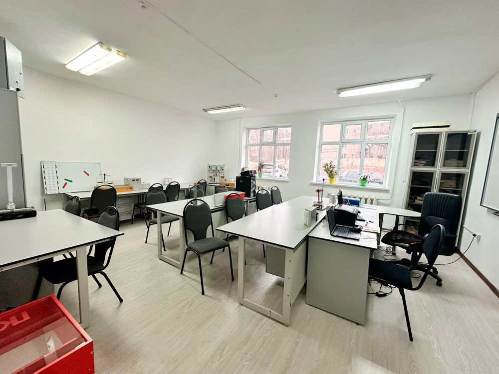 Кафедра оснащена современными компьютерными классами, интерактивными досками, подключенными к сети Интернет. Лаборатория по изучению механики и молекулярной физики оснащена необходимой аппаратурой для проведения экспериментов, лабораторных работ по определению ускорения свободного падения с помощью машины Атвуда и определения углов между силами. На занятиях студенты свободно практикуют законы электричества и напряжения и проводят исследования в своей области. Учебный процесс обеспечен всеми необходимыми учебными и методическими материалами, учебниками и литературой. - Преподаватели кафедры