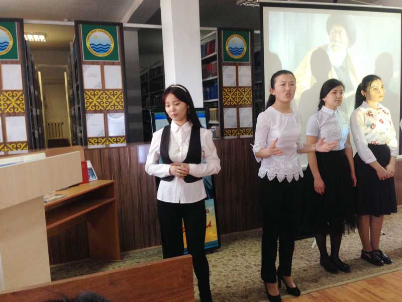 В этом году исполняется 172 года со дня рождения поэта Жамбыла. В честь юбилея поэта «Гомера XX века» кафедра «Библиотека» провела литературный вечер с участием студентов специальности «Казахский язык и литература». В литературном вечере приняли участие ректор университета, кандидат педагогических наук, доцент Даирбеков С.С., кандидат филологических наук, доцент Абенова Л.Ю.