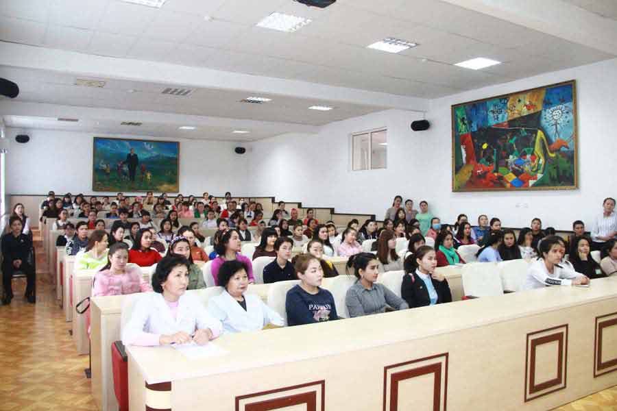 13 февраля 2018 года проректор по воспитательной и социальной работе университета, к.п.н., доцент кафедры медицинской службы Тленчиева Н.С. провела встречу с участковыми врачами. Онколог районной больницы Шералиев А., акушер-гинеколог городской поликлиники Зербаева Ф., координатор Центра здорового образа жизни Жантореева Е.К., врач центра Д.Б. Бухарбаева выступила с докладом.