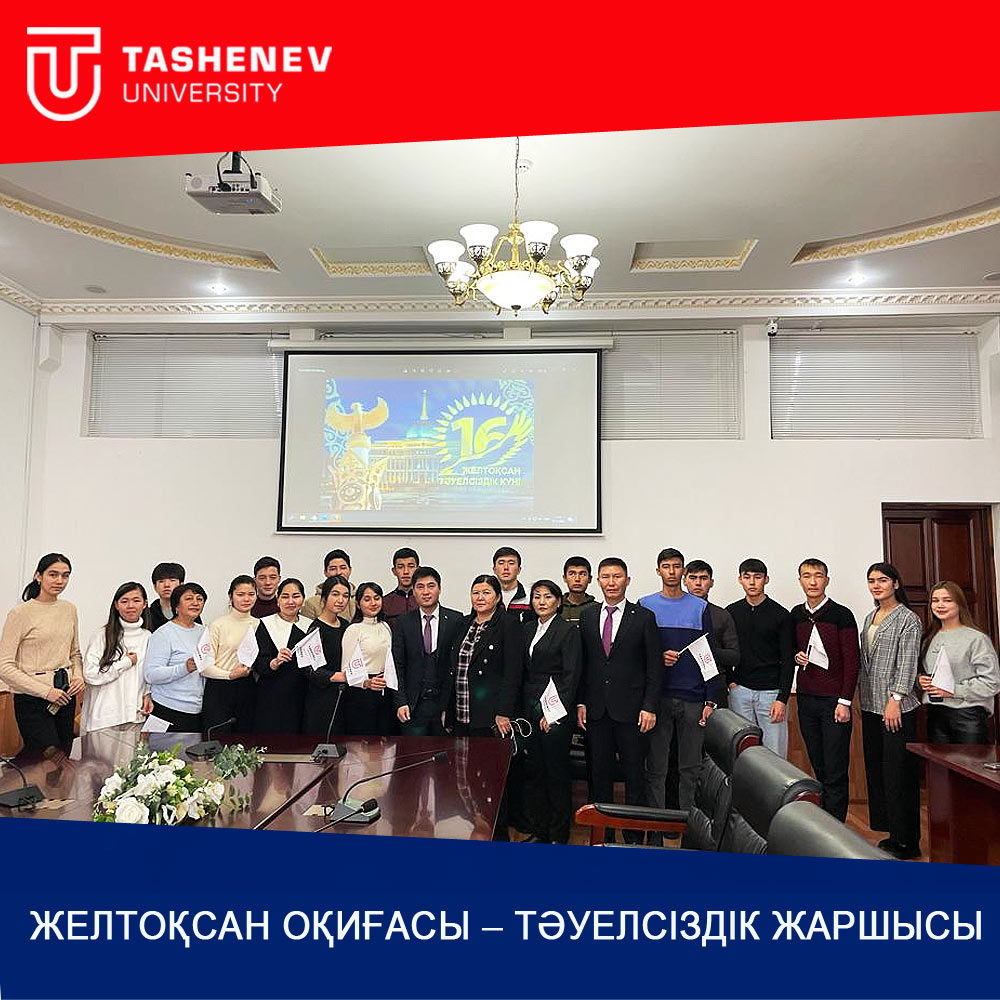 В рамках мероприятия участникам был представлен впечатляющий видеоролик о декабрьском событии. После этого старший преподаватель кафедры, магистр наук Акбота Тургимбаева, а также активные студенты поделились своими мыслями о Независимости и декабре и высказали свои пожелания. В конце церемонии прозвучала песня «Жаса, Казахстан!». Песня расширила горизонты познания участников, пробудила дух патриотизма и доставила душевное наслаждение.